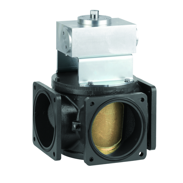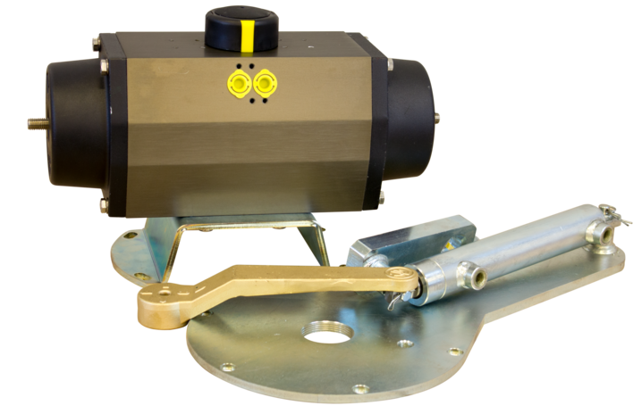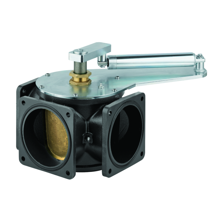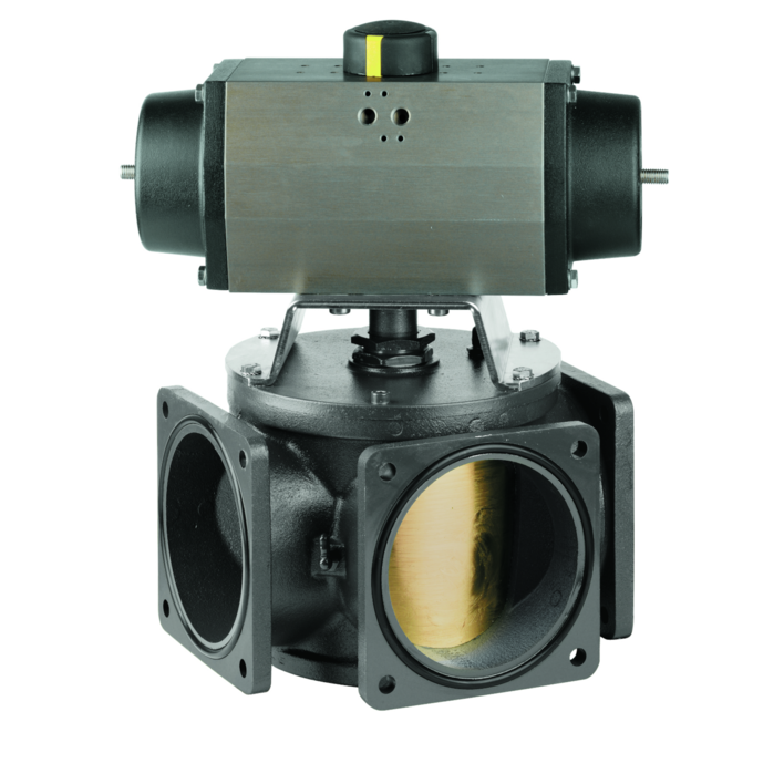 Dreiwegehahn mit pneum. Rotationsumschaltzylinder