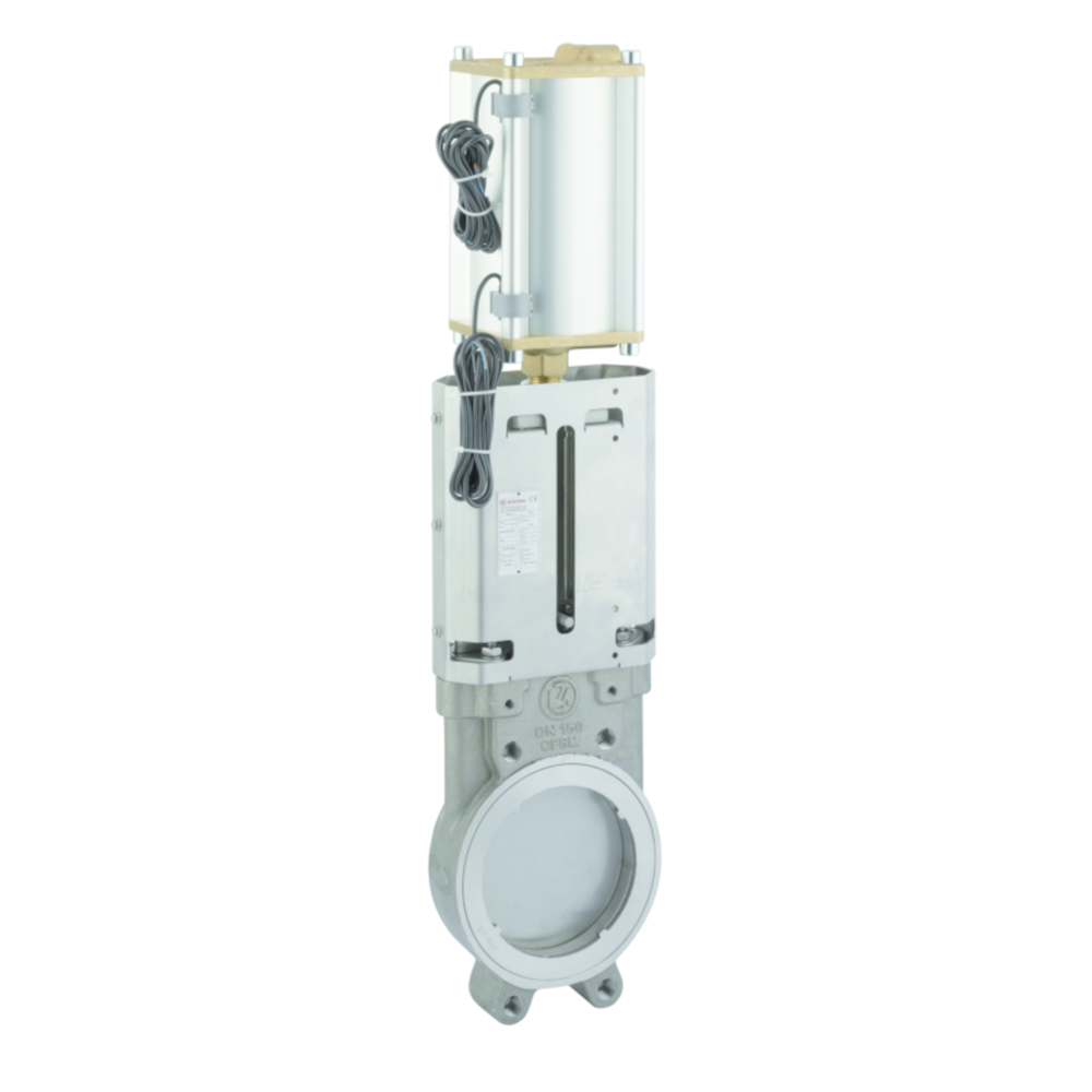 Edelstahl Plattenschieber mit doppelwirkendem Pneumatikzylinder magnetisch