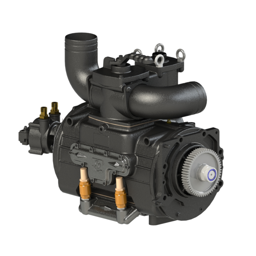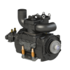 Die KPS-B/GA wird serienmäßig mit automatischer Schmierung - LA, Wasserkühlung (Wasserpumpe inklusive), hitzebeständige Lamellen (Long Life), schwenkbarem Krümmer und Schlauchanschluss, integriertem Rückschlagventil im Kollektor (ersetzt die Gummikugel) und seitlichem Öltank ausgeliefert.