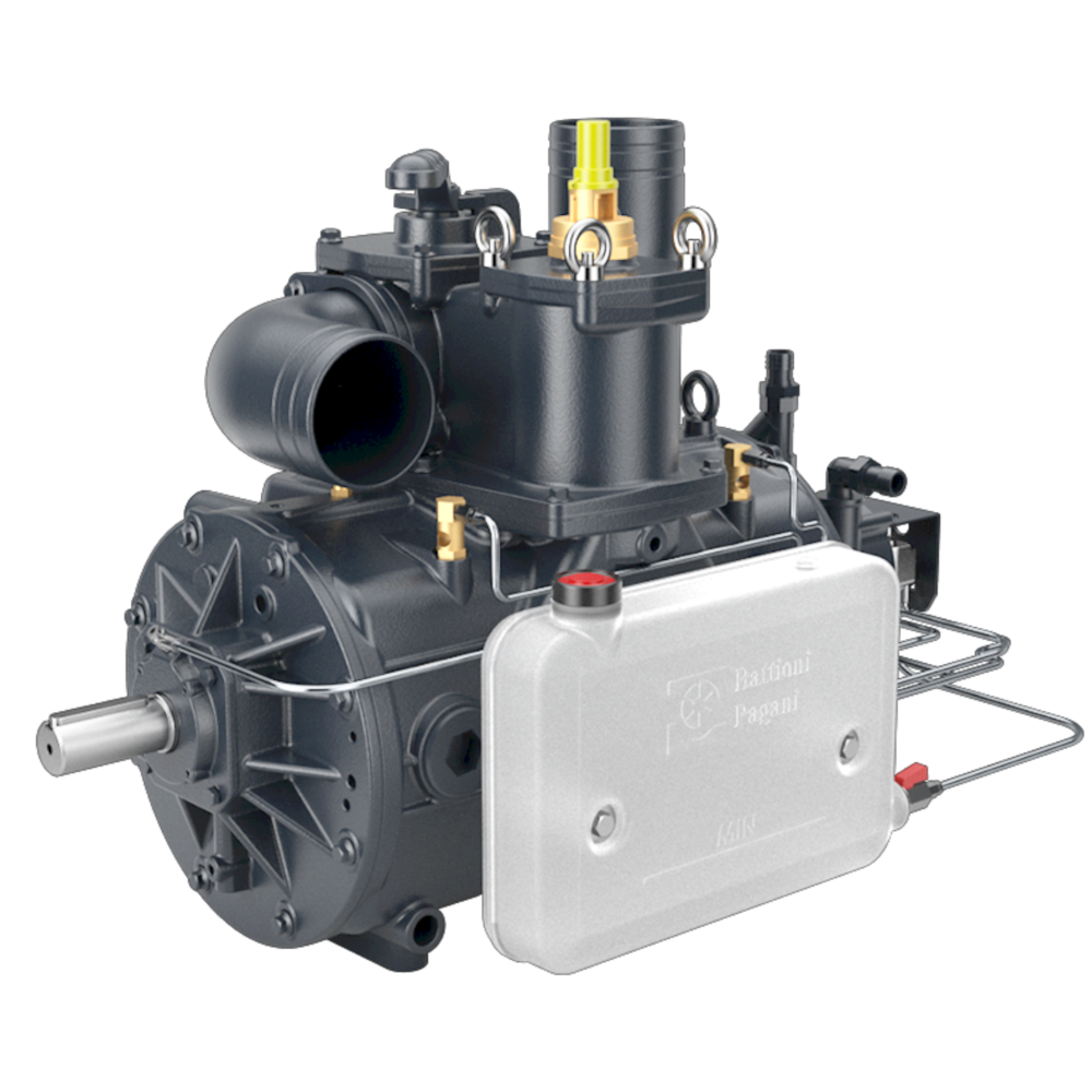 Die KPS-B/P wird serienmäßig mit automatischer Schmierung - LA, Wasserkühlung (Wasserpumpe inklusive), hitzebeständige Lamellen (Long Life), schwenkbarem Krümmer und Schlauchanschluss, integriertem Rückschlagventil im Kollektor (ersetzt die Gummikugel) und seitlichem Öltank ausgeliefert.