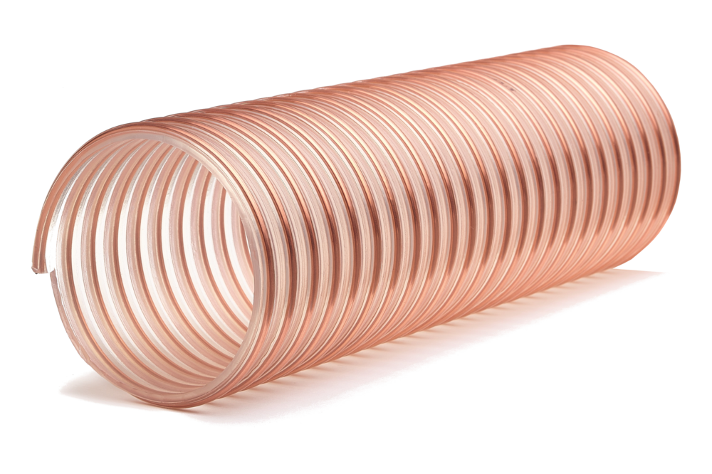 Sehr schwerer Saug- und Druckschlauch aus Polyether-Polyurethan mit Stahldrahteinlage zur Beförderung von abrasiven Materialien.